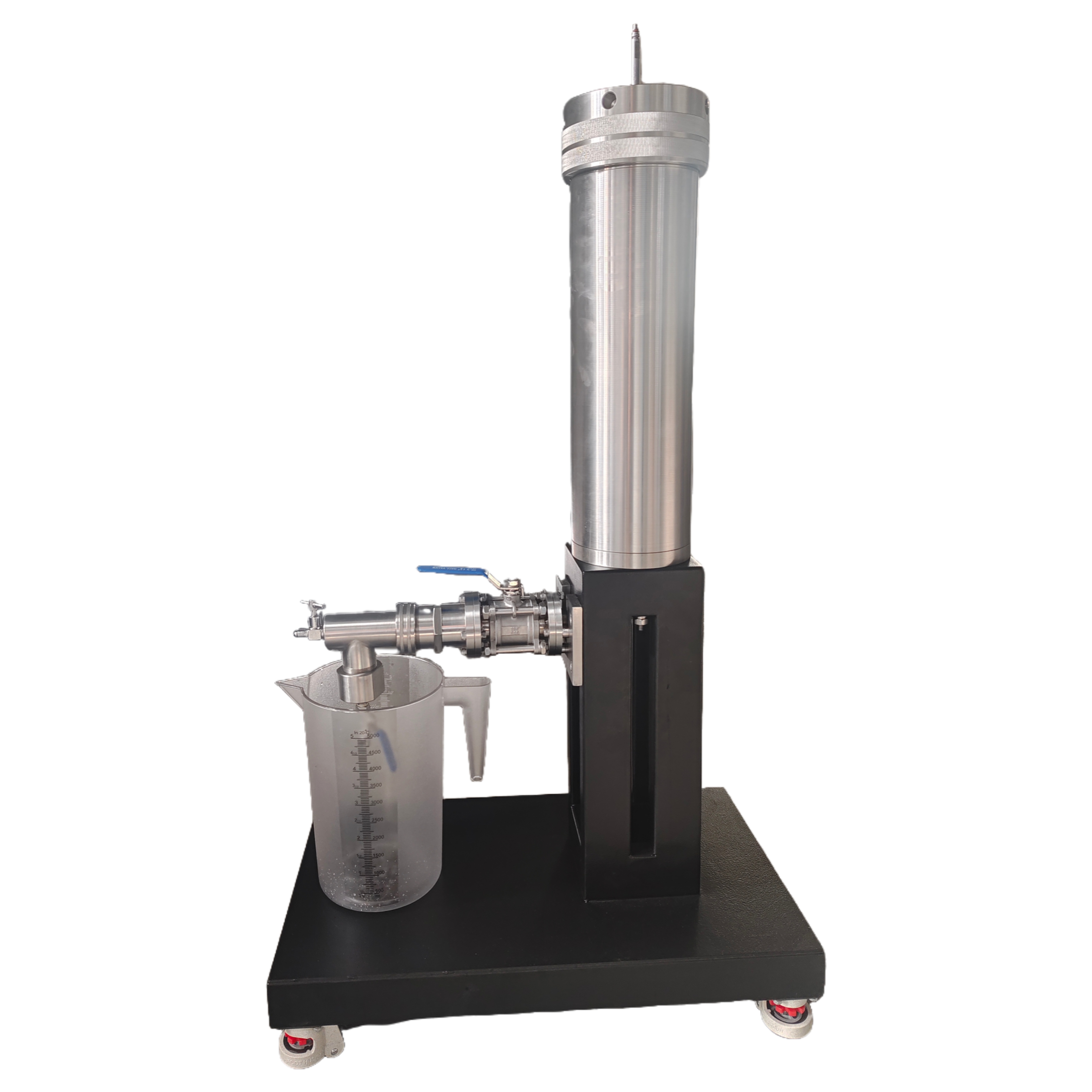 该仪器按照美国(API)推荐程序,另外增加了堵漏压力反排装置,其目的是检测封堵成功后反向破坏封堵所需的力,以便研究封堵材料的结构强度,为堵漏材料的选择提供更可靠依据。此外,该仪器还具有体积较小、结构简单,使用方便,能模拟测定不同状态下的漏失参数。